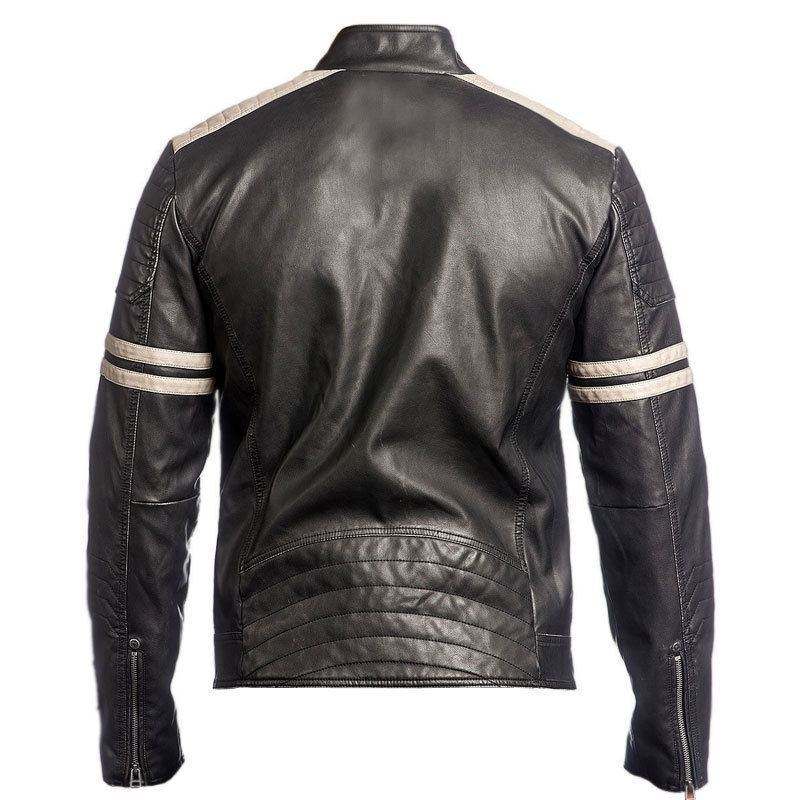 NUEVOS HOMBRES DE CUERO DE OVEJA GENUINO NEGRO SLIM FIT CHAQUETA ESTILO BIKER