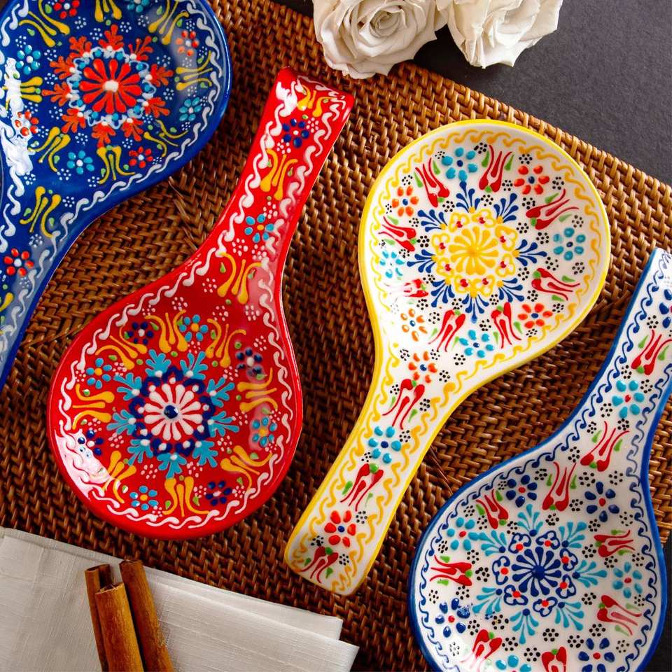 NUEVO MODELO Comprar Cuchara de cerámica Descanso 21cm Cerámica turca hecha a mano Soporte de cocina de metal indio para espátulas Cucharas Pinzas Más