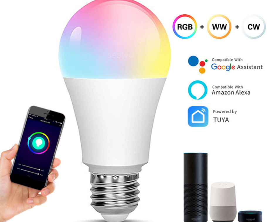 NUEVO Bombillo Led Inteligente Wifi 9W 10W E27 E26 Lámpara RGB Colorida con Control Remoto Regulable Compatible con Alexa Foco Inteligente