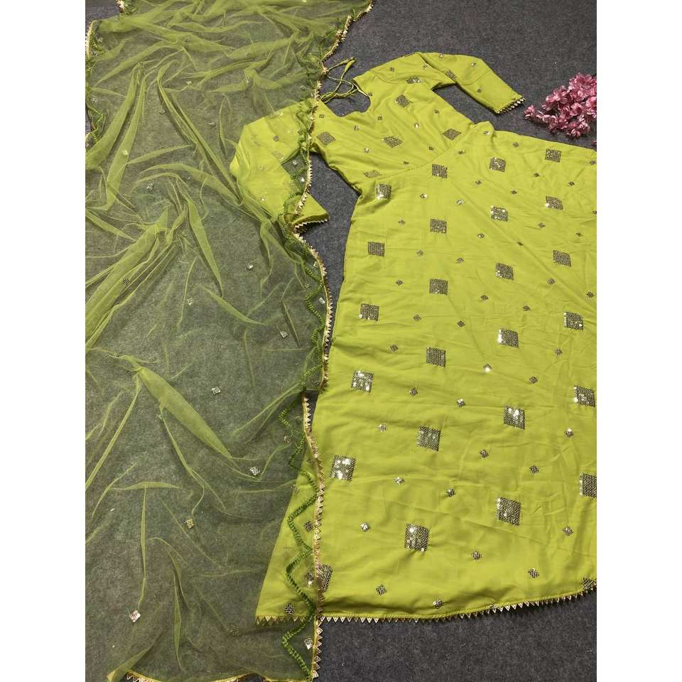NF Hermoso Vestido Anarkali Verde Talla M para Fiesta con Dupatta Elegante