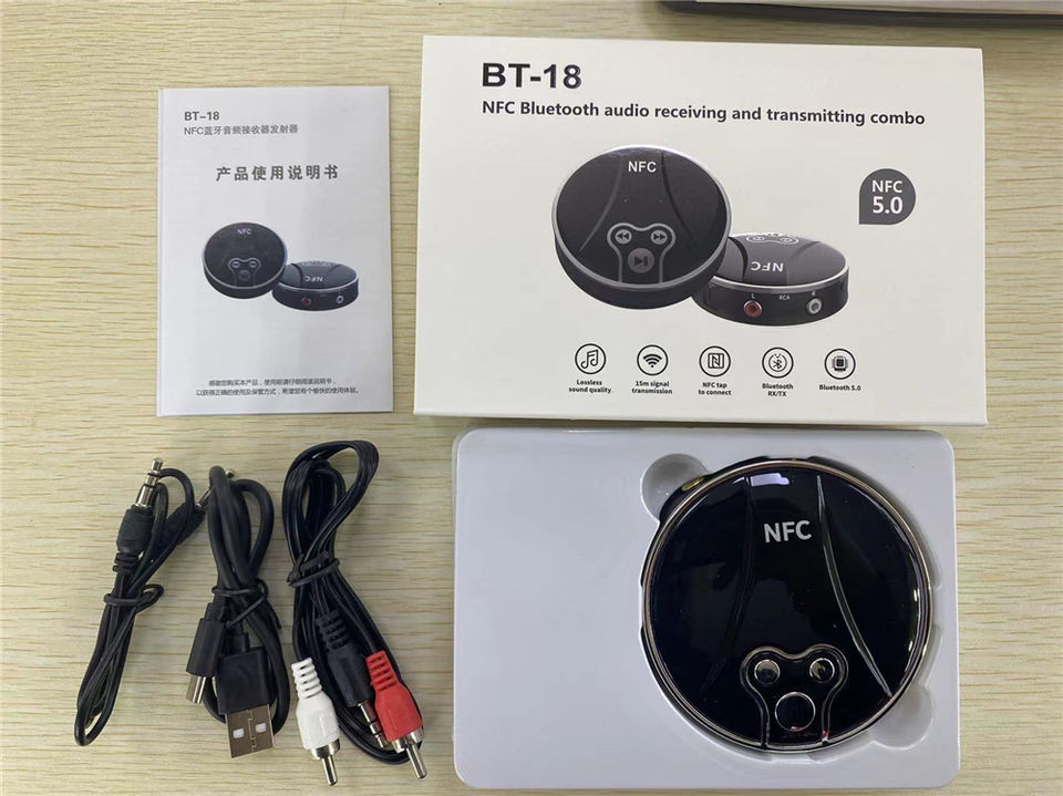 NFC 5,0 Receptor Bluetooth Transmisión 2 en 1 RCA AUX 3,5mm Coaxial óptico Reproducción inteligente Adaptador inalámbrico de audio estéreo HiFi