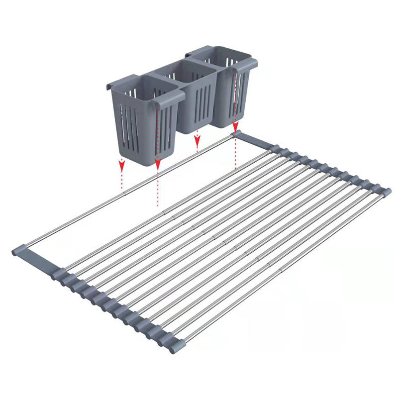 Escurridor de Cubiertos de Acero Inoxidable NFS, Escurridor de Cocina Retráctil, Soporte para Cuchillos y Tenedores, Escurridor de Platos Plegable