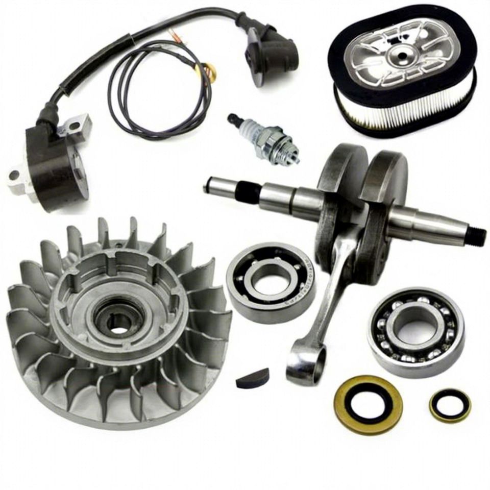 Kit de piezas SKD para motosierra NGK MS660 066: bujía, volante, cigüeñal, bobina de encendido, filtro de aire y rodamiento de bolas ranurado.