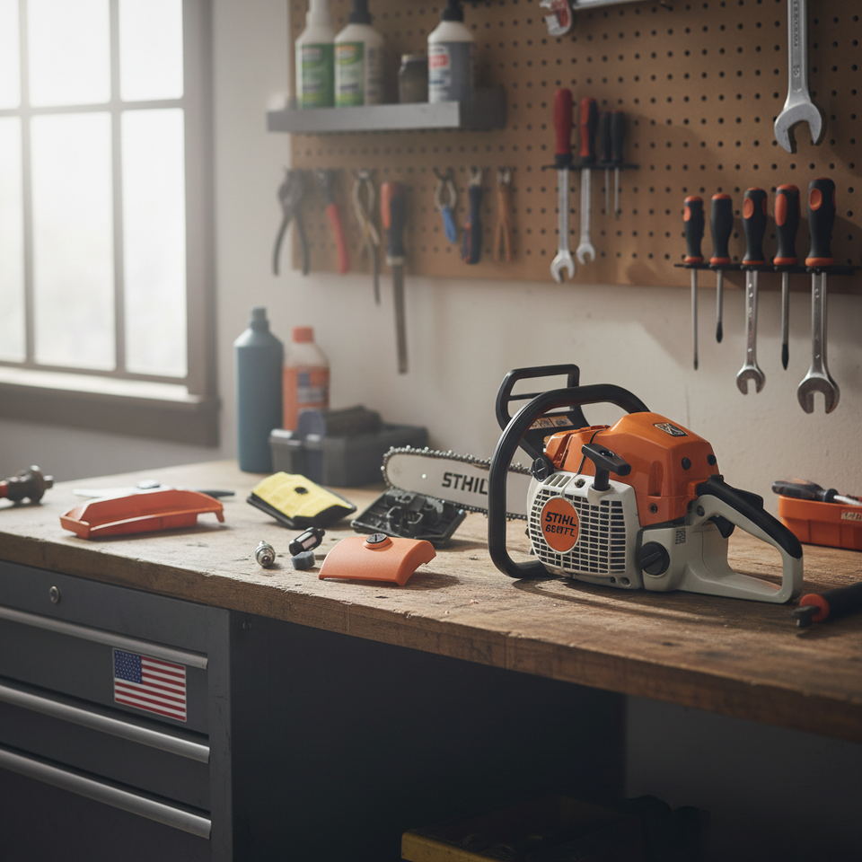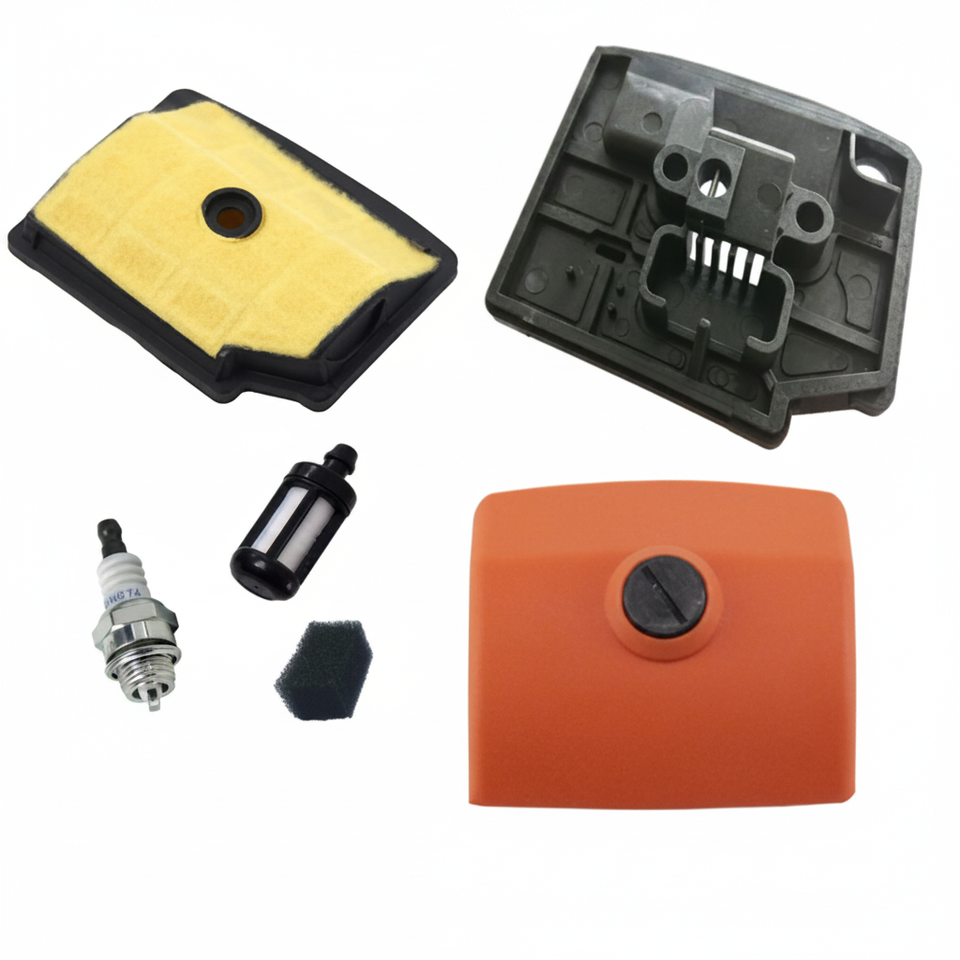 Kit de piezas combinadas NGK: Bujía, filtro de combustible, inserto de espuma, cubierta de filtro de aire y base, compatible con motosierra Stihl MS200T 020T