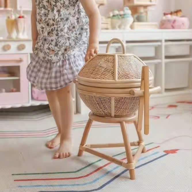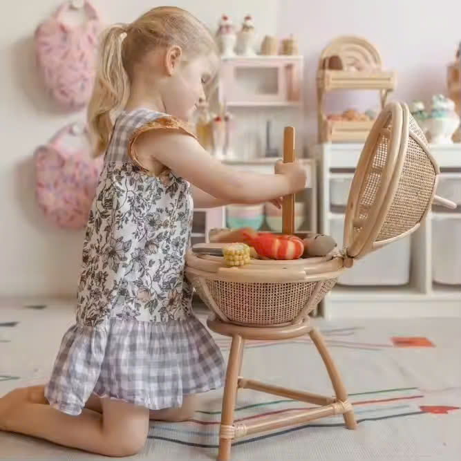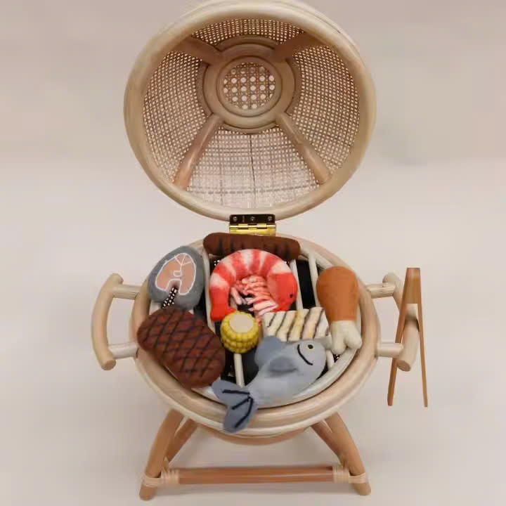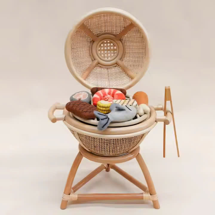Parrilla de comida de ratán - Juguete para niños, juguete de simulación de cocina, juguete de cocina.