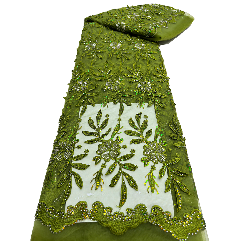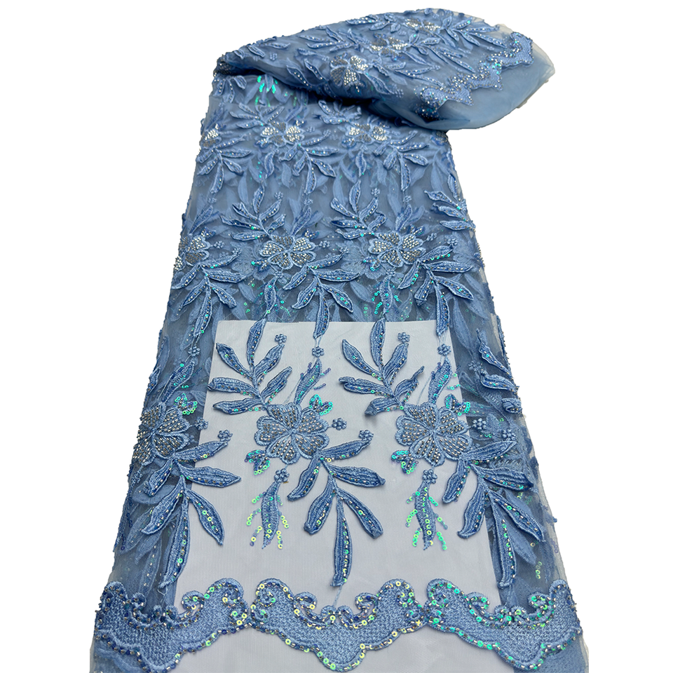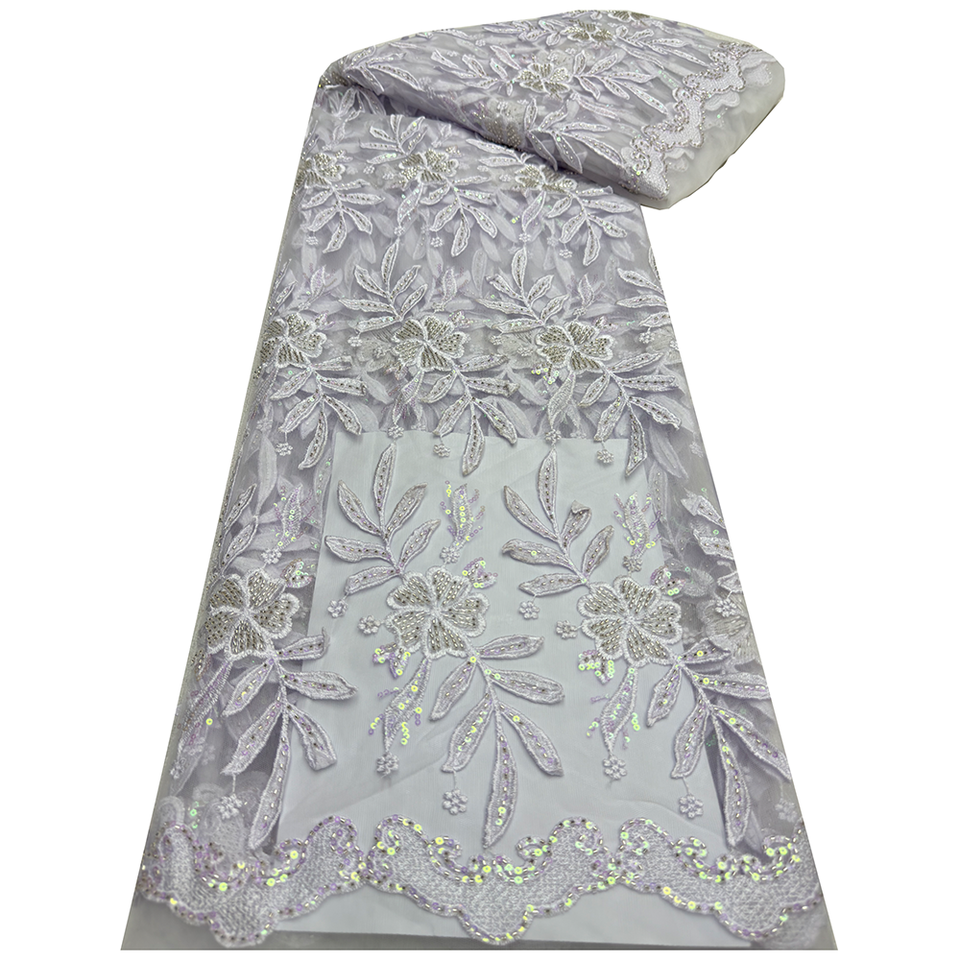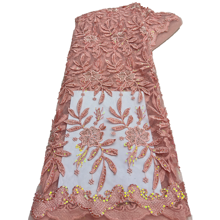 NI.AI, vestido de cuentas de tela africana de encaje con lentejuelas bordadas de color melocotón, encaje de red encantador para ropa de mujer