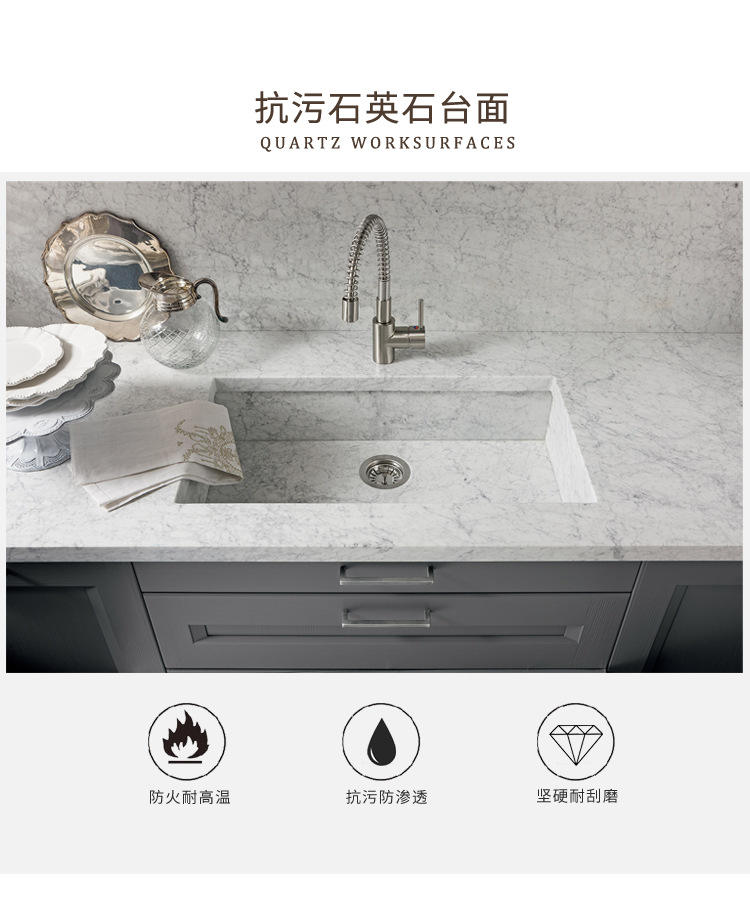 Accesorios:Protector contra salpicaduras, Cajón de cesta, Corredera de extracción, Grifo, Asa y perilla, Bisagra, Almacenamiento en alacenas esquineras, Caja de arroz, Lavabo, Puntapie, Contenedor de desperdicio
