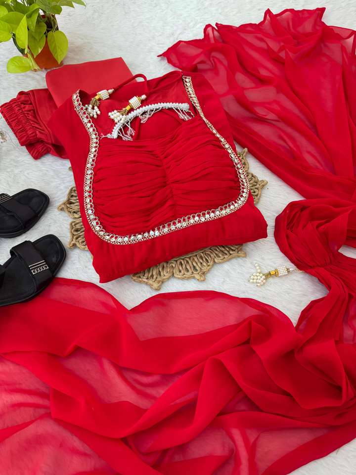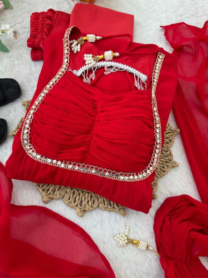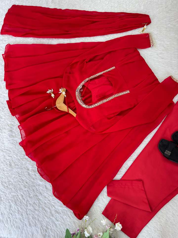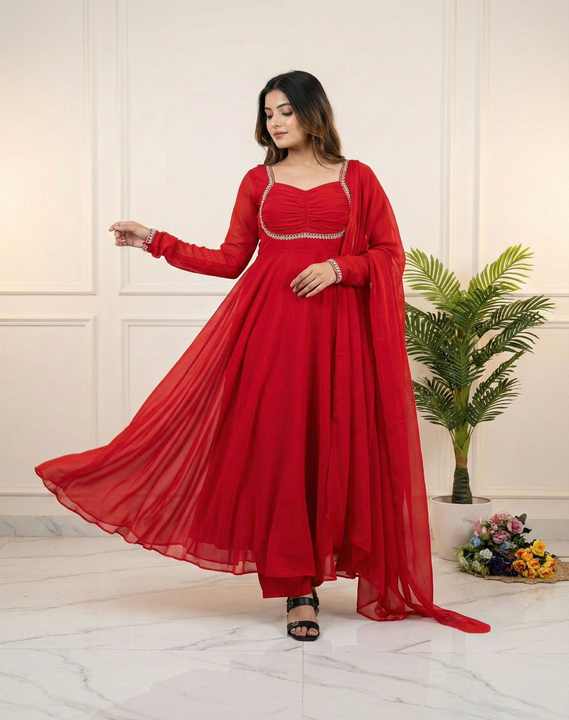 Vestido de fiesta vintage de georgette de tejido pesado con cuello redondo y manga larga, largo hasta la rodilla, con estampado floral y detalles de Zari de NILESH TAILOR FASHION