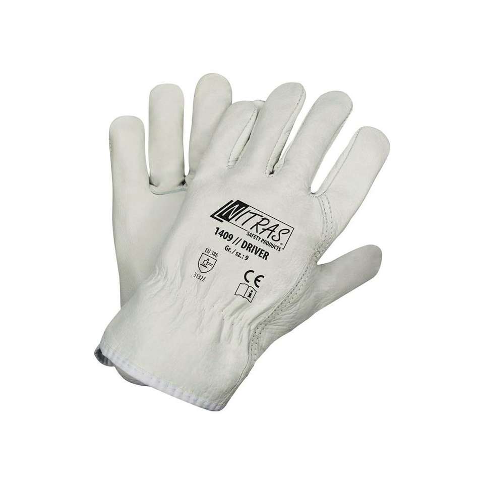 NITRAS Guante Driver talla 9 gris piel de vaca plena flor EN 388 PPE categoría II