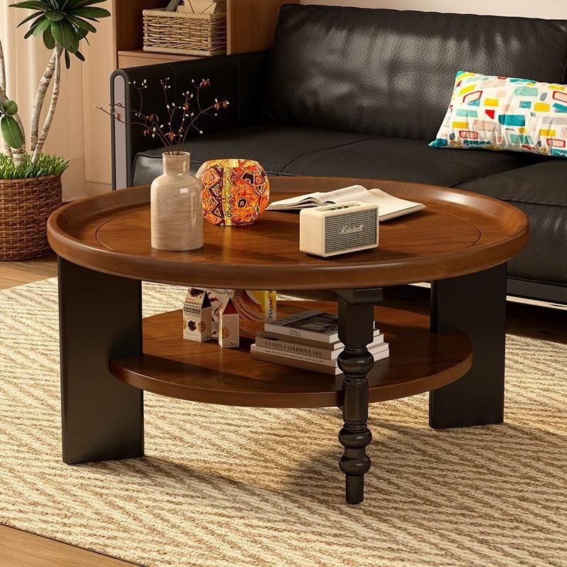 Mesa de Centro Redonda de Madera Maciza Estilo Francés NKAHS, Diseño Moderno, Ecológica, Duradera, Fácil de Limpiar, Muebles para Sala de Estar