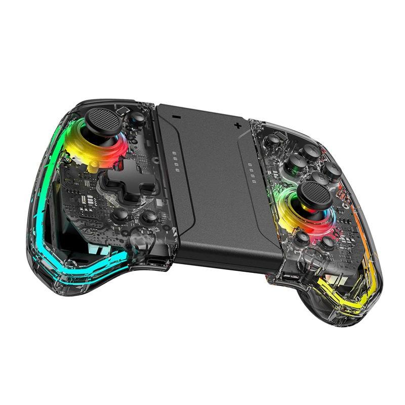 NKIWI LinYuvo - Controlador de Juegos Móvil Inalámbrico con Luces LED de 8 Colores, Estilo Transparente con Efecto Arcoíris