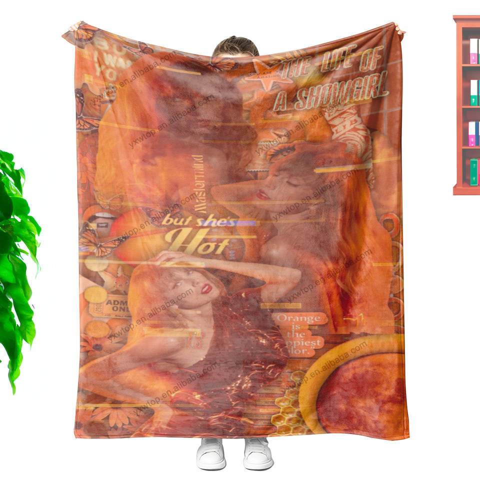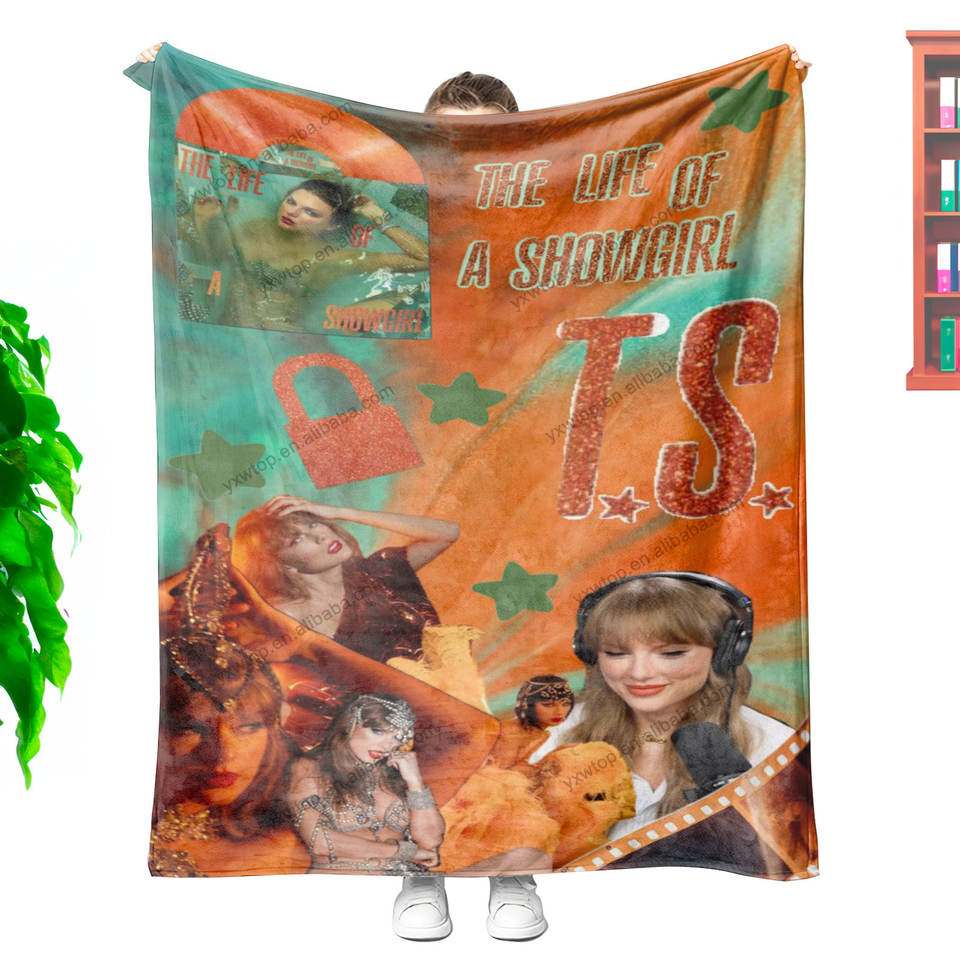 SIN MOQ Diseño personalizado Solid Life Showgirl Taylor's New Album Cover Manta de microfibra ligera de felpa súper suave y acogedora