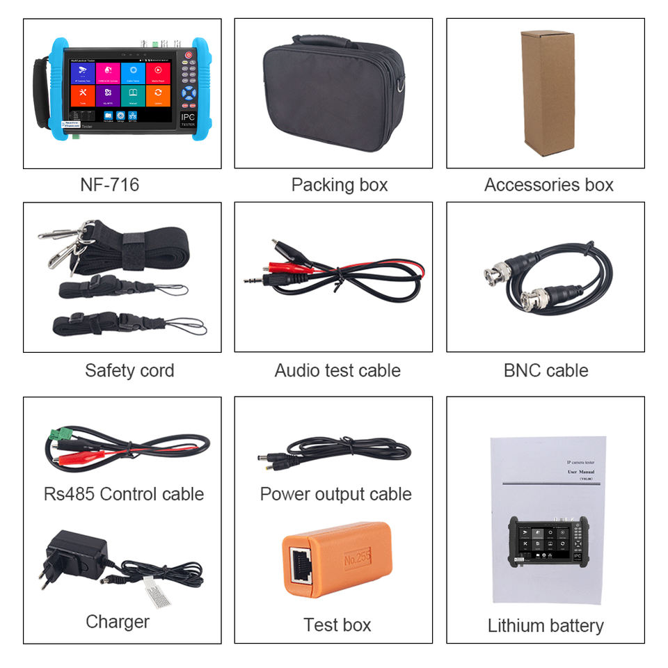 NOYAFA NF-IPC716ADHS PRO Probador de Cámaras Todo en Uno de 7 Pulgadas CVI TVI AHD 8MP EX-SDI HD-SDI 3G-SDI, Probador CCTV 4K HD