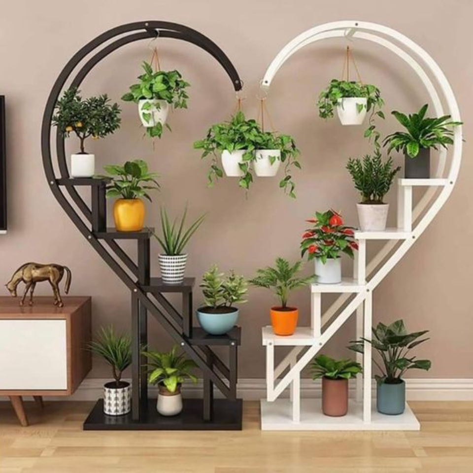 Soporte para Plantas de Metal con Forma de Corazón NP-FS03, Estante para Plantas de Múltiples Niveles para Uso en Interiores
