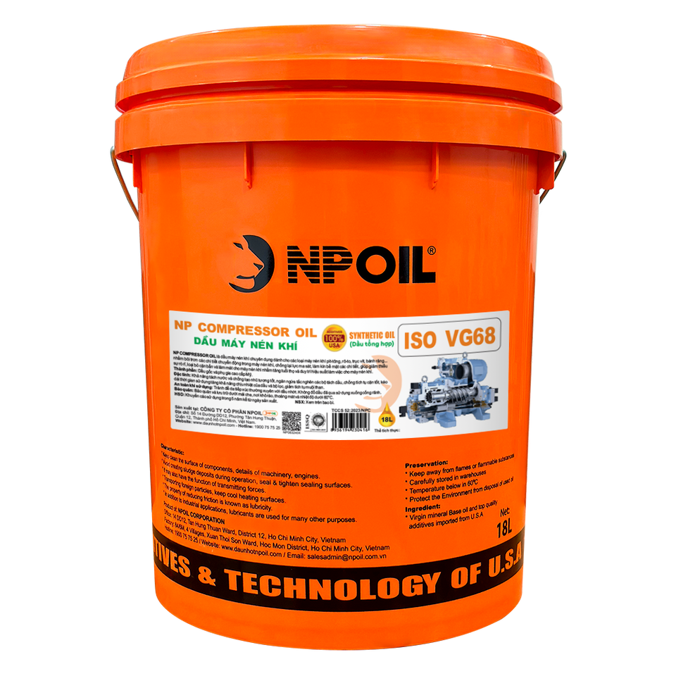 Aceite Sintético para Compresores de Aire NPOIL ISO VG 68, Bidón de 18L, Tambor de 200L, Aceite para Compresores de Aire de Varios Tipos