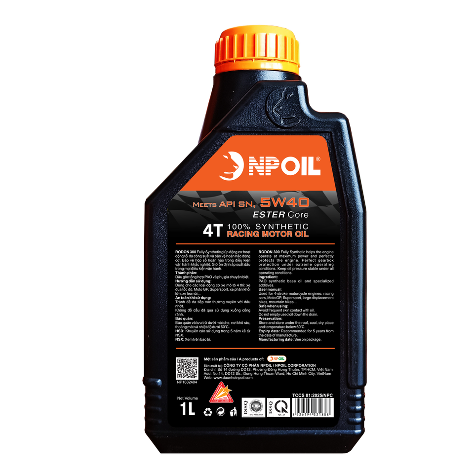 Aceite de motor NPOIL RODON 300 5W40 1L Vietnam Lubricante Aceite base y aditivos premium Alta calidad LUBRICANTE PREMIUM