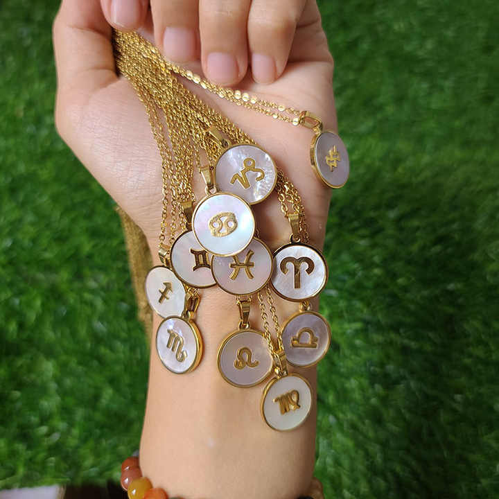 Tipo religioso:COLLAR COLGANTE de disco de Zodiaco de concha blanca