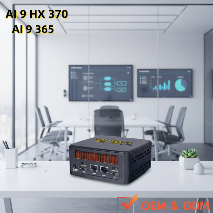 Mini PC NUC AMD AI 9 HX 370 2*DDR5 2*2.5G Lan RS 232 2*USB 2*HD/Type-C AMD AI 9 365 Barebone Industrial Edge AI Mini PC de Escritorio