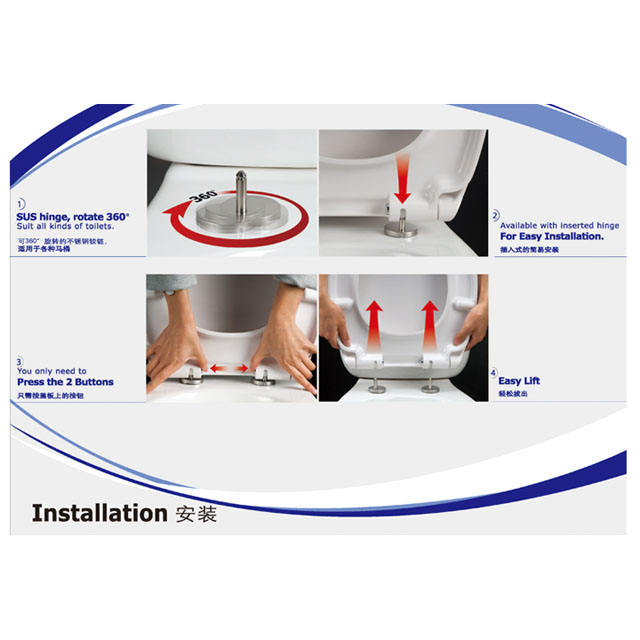 NUCA Cierre suave de liberación rápida Tres bisagras Pernos a juego Cubierta de asiento de PP opcional por fijación superior