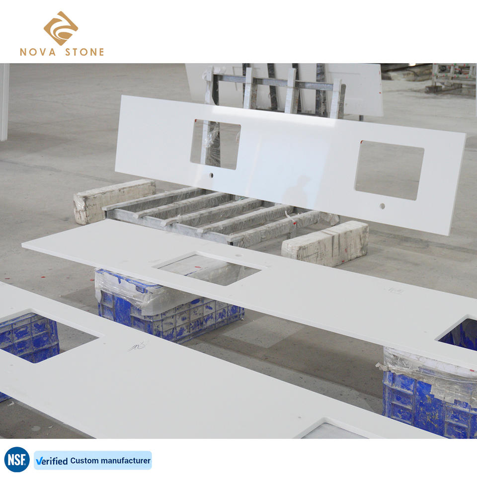 Encimera de baño de tocador de cuarzo prefabricada NV171, superficie pulida elegante brillante hecha en fábrica