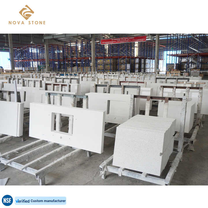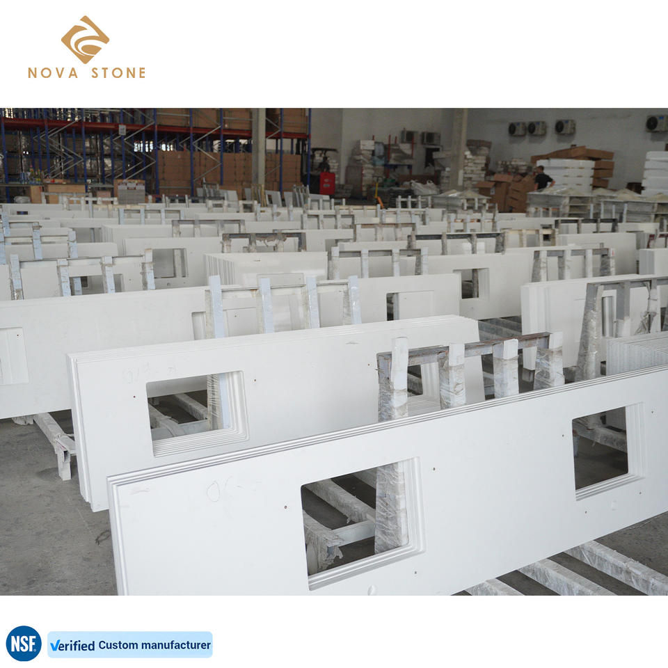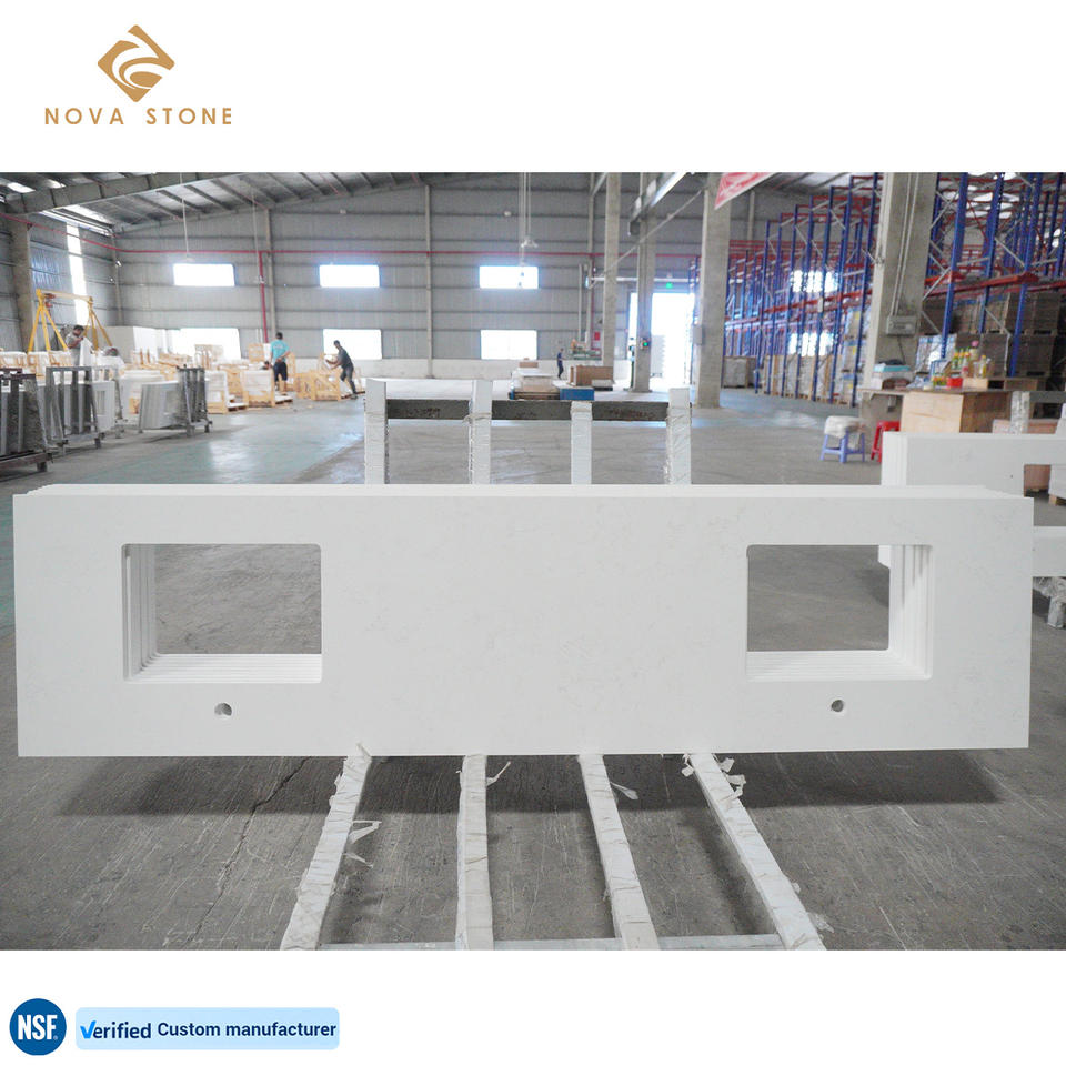 NV723 Cuarzo Vanity Top Color homogéneo Textura Artificial Carrara Cuarzo blanco Baño Vanity Top Fabricación