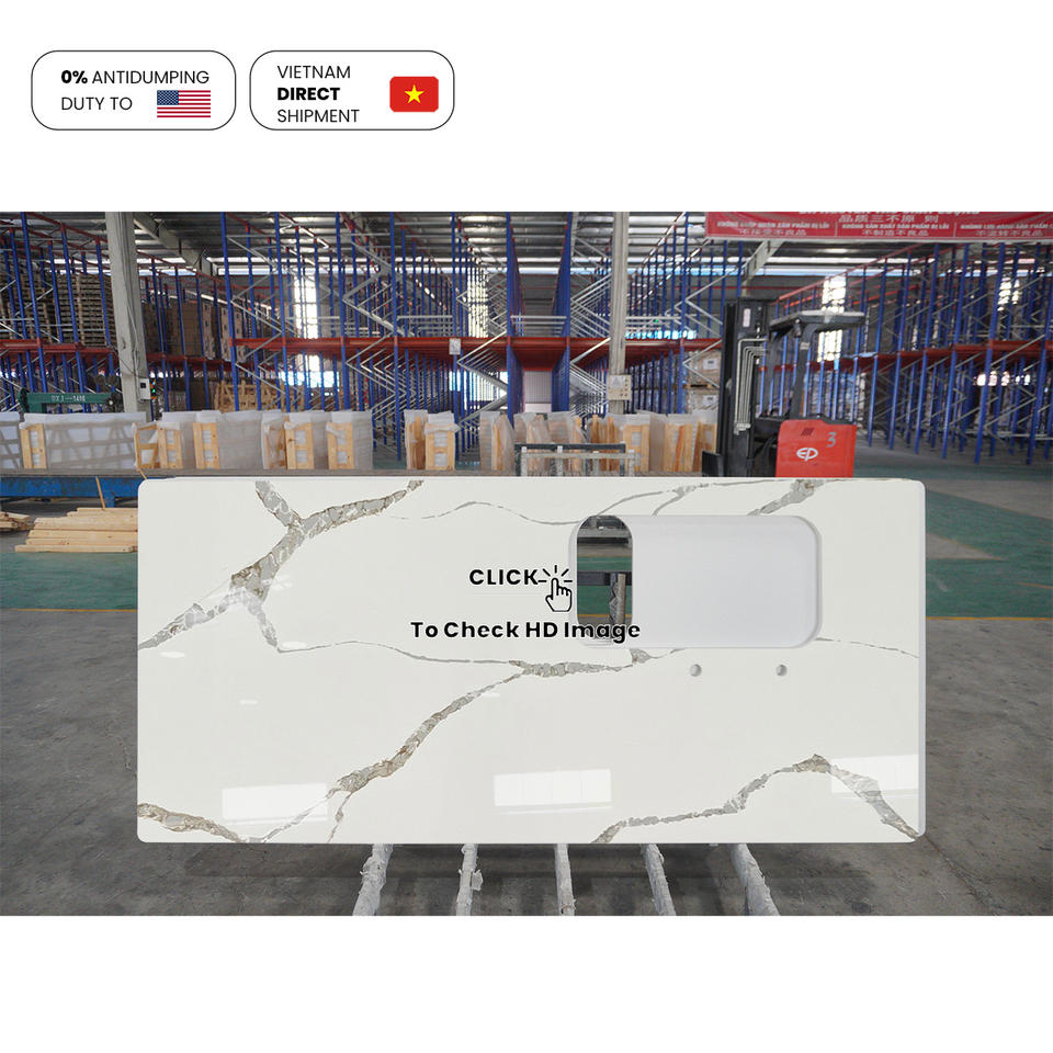 NV881 Fascinante de gama alta minimalista Nueva escena Ingeniería residencial Villa Piedra de cuarzo artificial Gabinete de cocina Losa superior