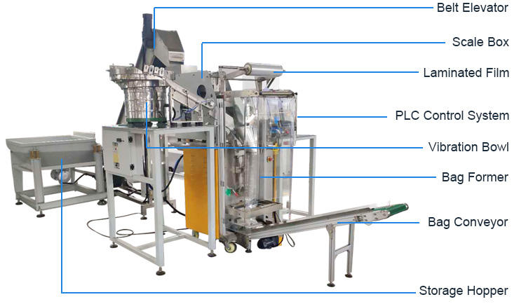 Función principal:Uñas de pesaje contando máquina de embalaje