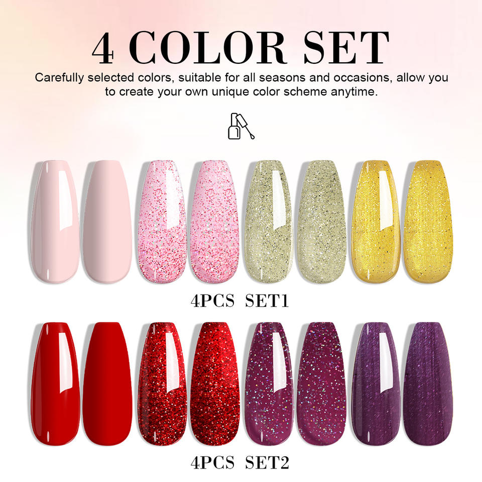 Set de Esmalte de Uñas en Gel, 4 Colores, Nuevo Estilo, Arte de Uñas, Secado con UV/LED, 15ml