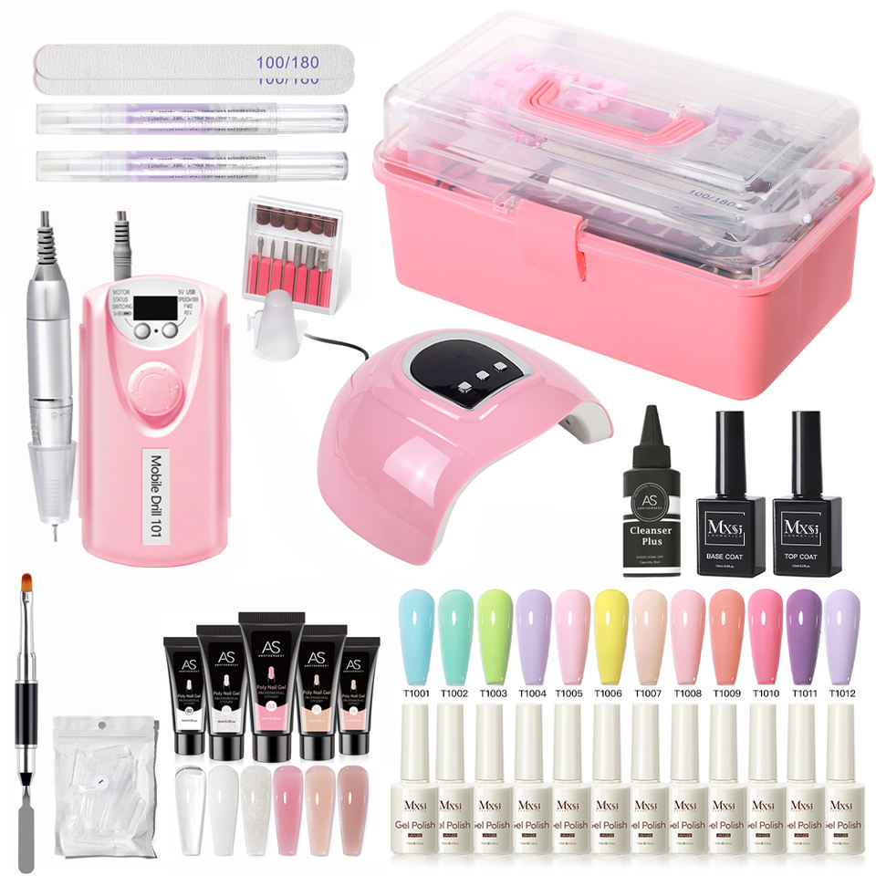 Kit de Uñas Profesional Completo con Lámpara de Uñas, Colores Semipermanentes, Base y Capa Superior Removibles, Esmalte de Uñas, Gel de Uñas Poly