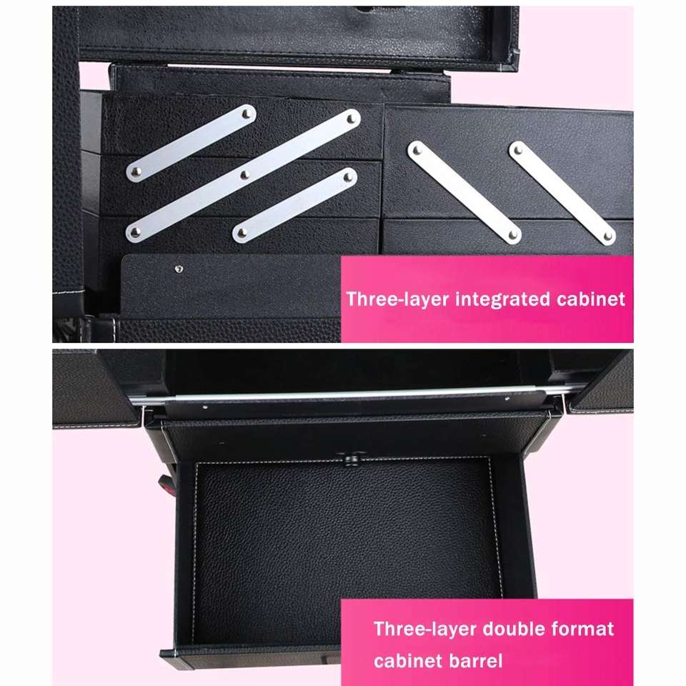 Uñas maquillaje caso Trolley de gran capacidad cosmética caja de equipaje rodante Multi-capa de salón de belleza tatuaje maleta Trolley
