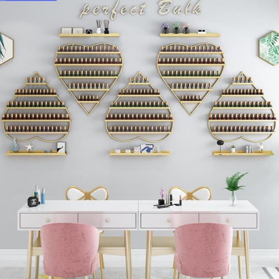 Estante de Pared para Salón de Uñas, Soporte de Pared para Esmaltes de Uñas, Estante de Almacenamiento de Esmaltes de Uñas de Hierro, Exhibidor de Esmaltes de Uñas Dorado