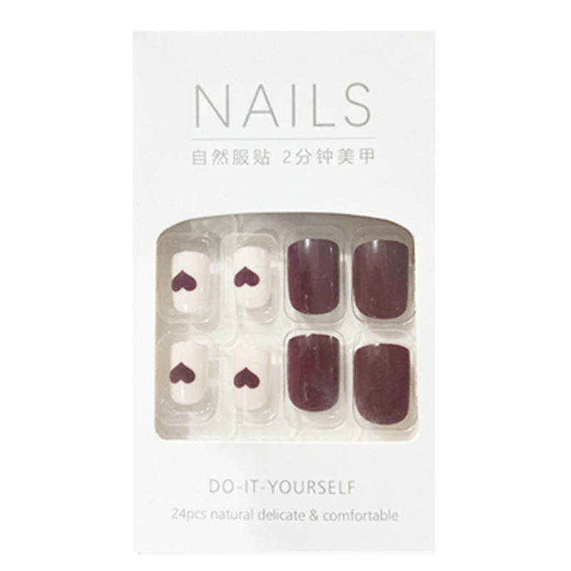 Uñas Estilo corto Vino Rojo Acabado Pegatinas de uñas usables Extraíble Reutilizable Gradiente de cielo estrellado