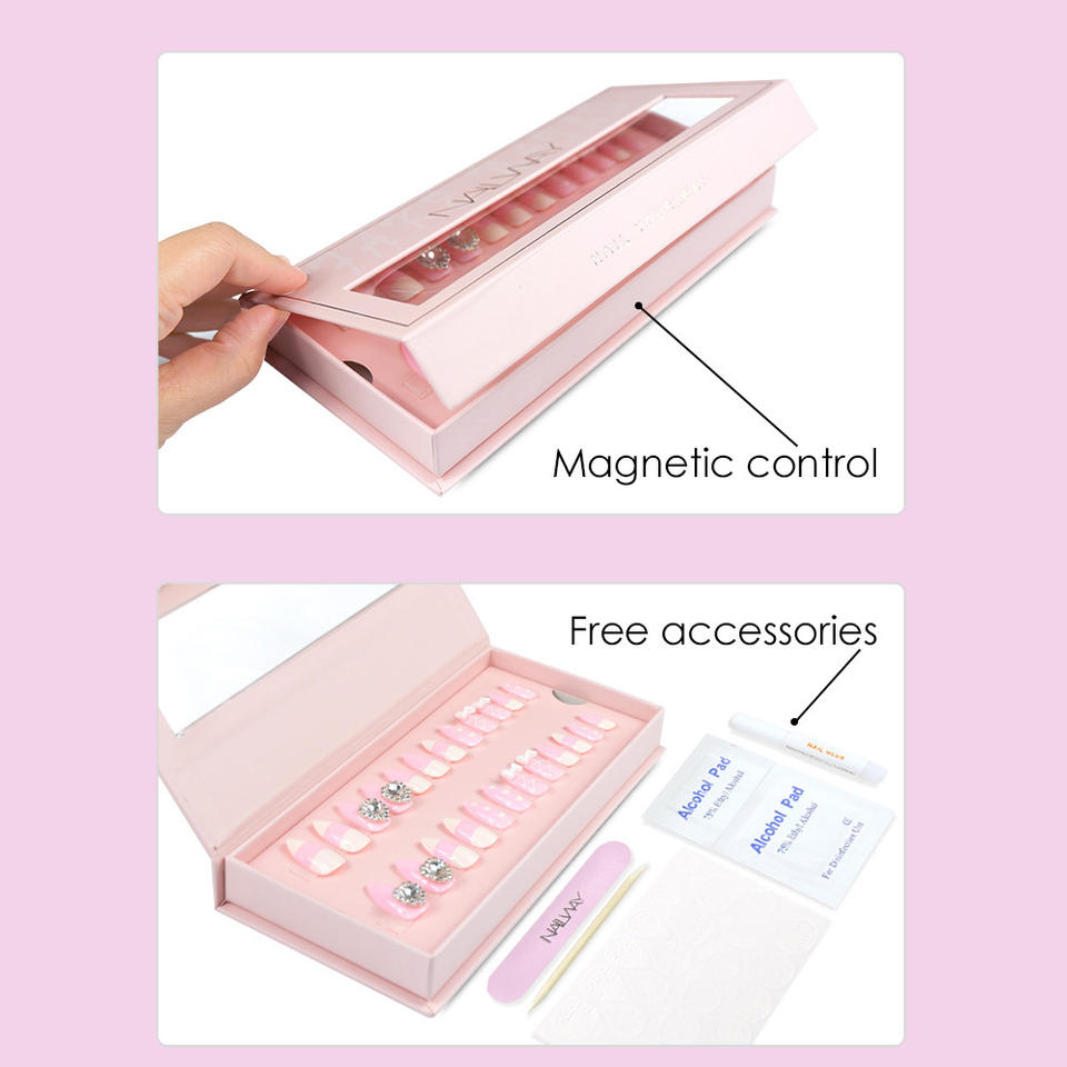 Nombre del producto:Prensa larga de acrílico de los clavos falsos en el rosa de los clavos con el palillo de la hoja en clavos