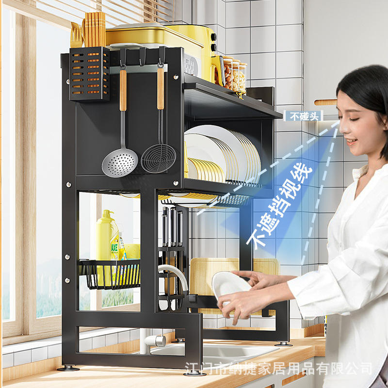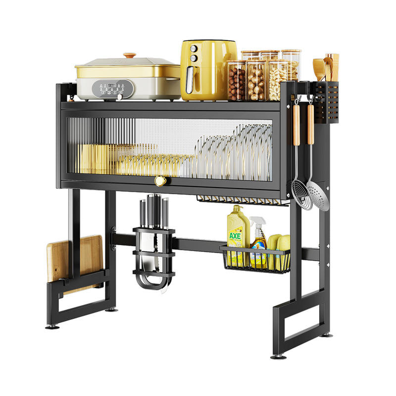 Estante para platos de cocina Najia con escurridor, organizador de fregadero, puertas de armario a prueba de polvo, estante cuadrado multiusos para uso doméstico