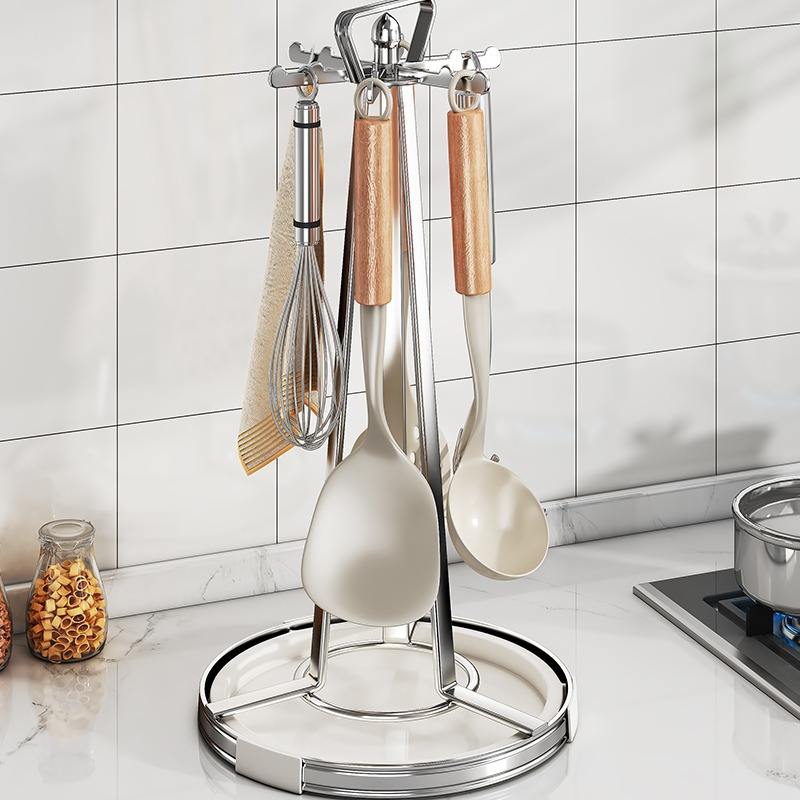 Najie - Portautensilios Giratorio Multifuncional, Redondo, de Acero Inoxidable, para Colgar en la Cocina, para Guardar Cucharas y Espátulas