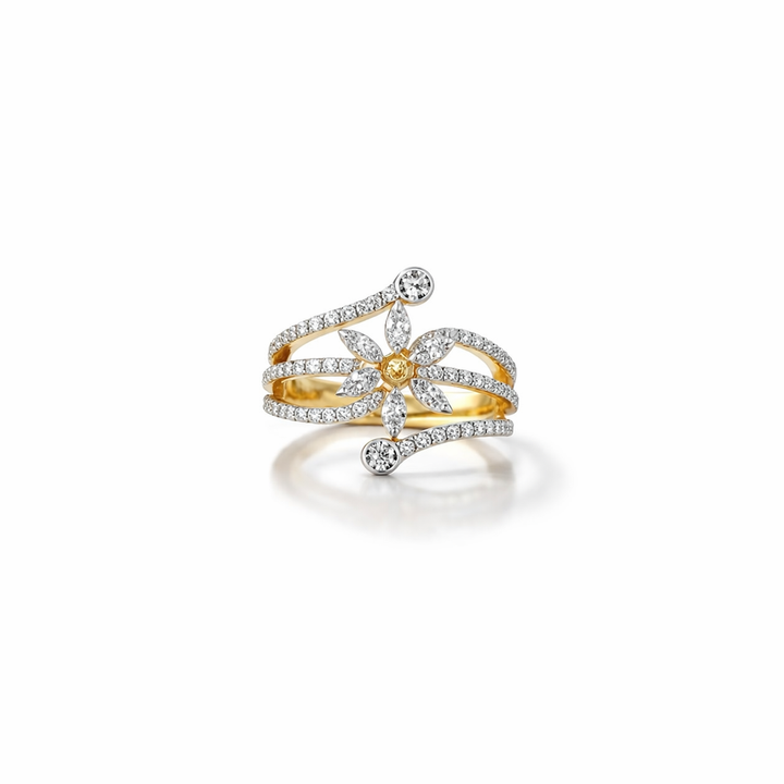 Anillo de Cóctel Elegante con Diseño Floral de Dos Tonos y Microincrustaciones Namivaa, Joyería para Mujer, Bodas y Fiestas