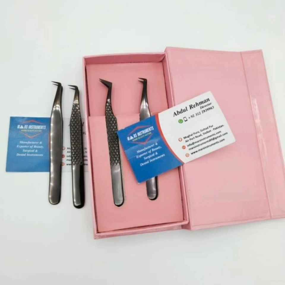 Pinzas de extensión de pestañas con punta de nano fibra Rosa Mango de agarre de diamante Acero inoxidable