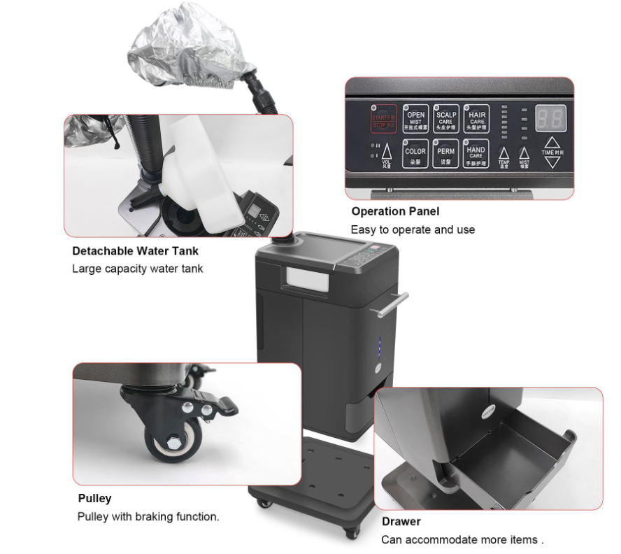 Máquina de Vapor para el Cabello Nano Micro Mist, Vaporizador de Hidratación Capilar con Lámpara para Salón de Belleza
