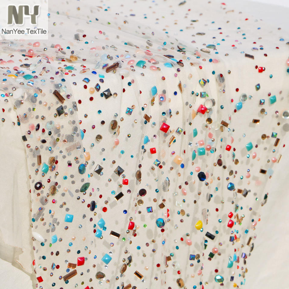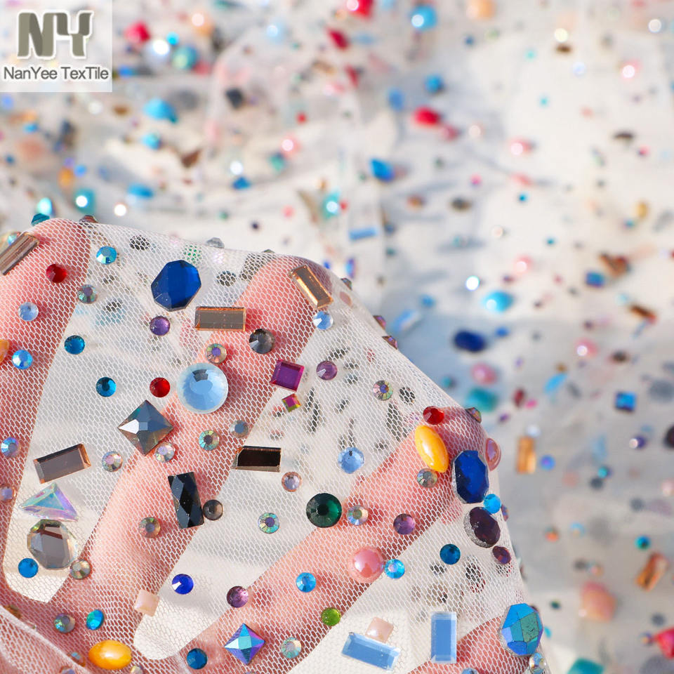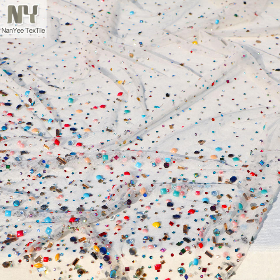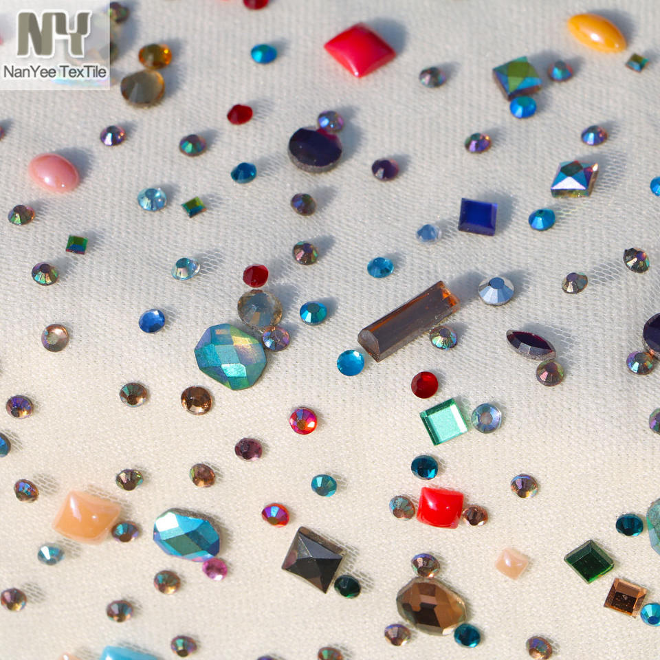 Nanyee-textil de múltiples formas para vestido de pasarela, telas de diamantes de imitación pegados con transferencia de calor colorida