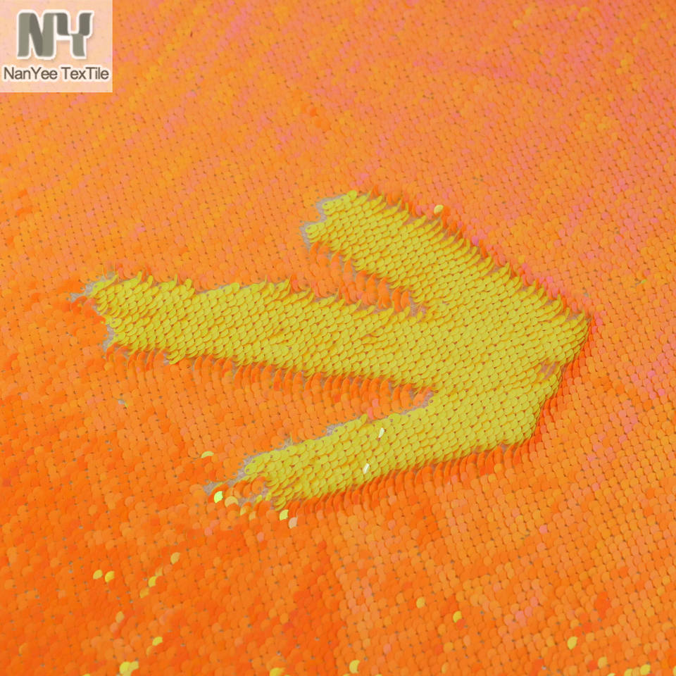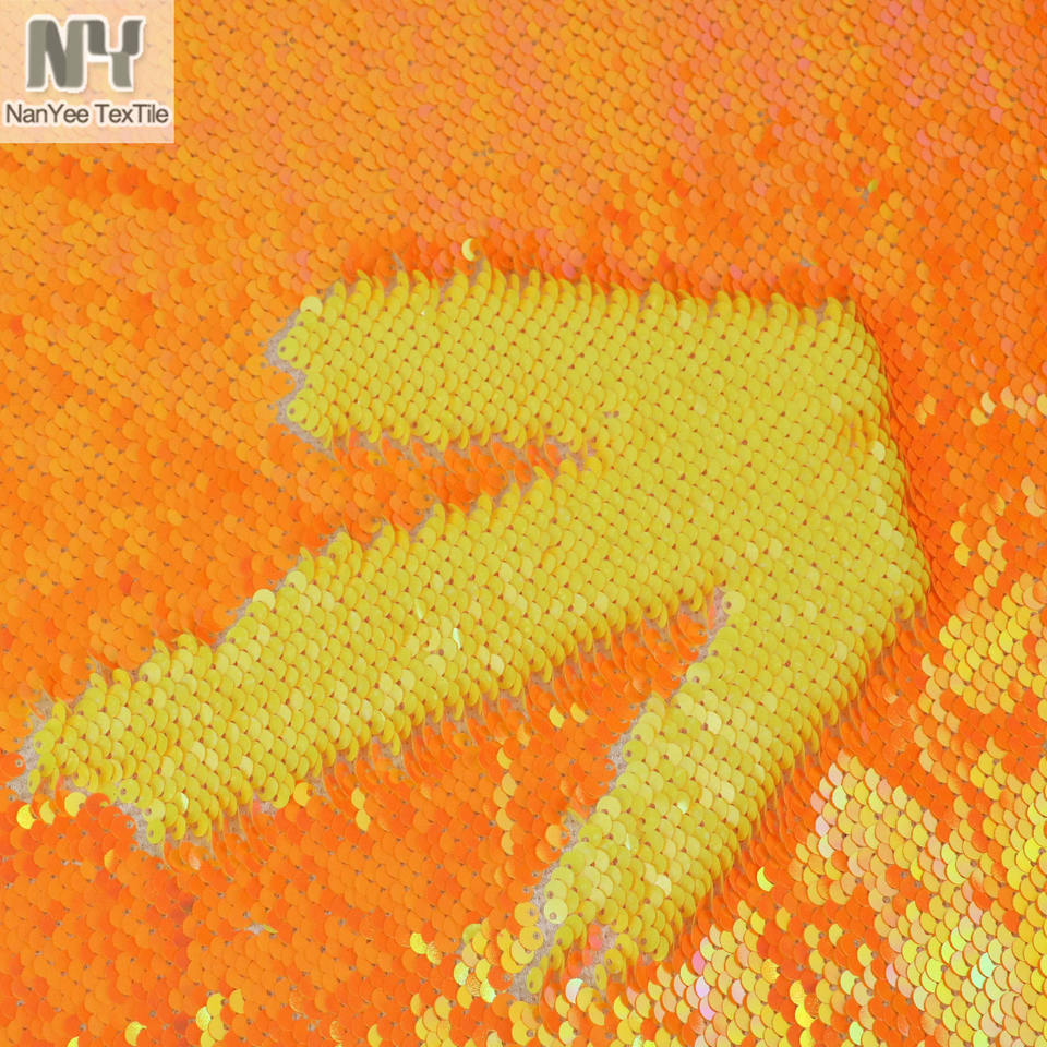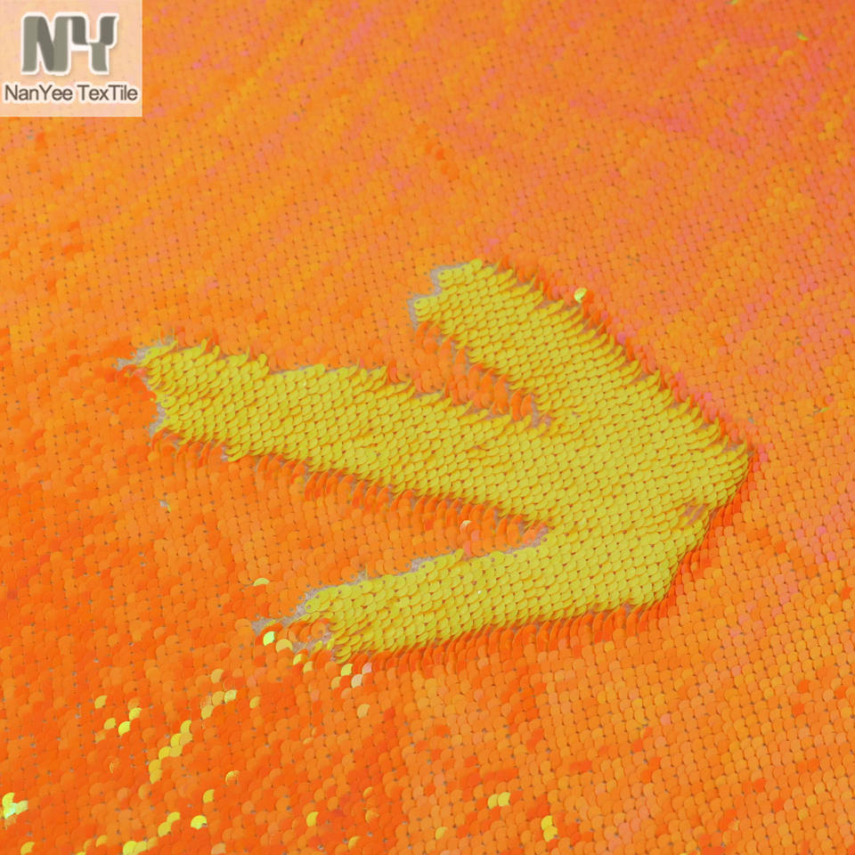 Nanyee-tela de lentejuelas naranja neón para chaqueta, textil, venta por metro, dos colores