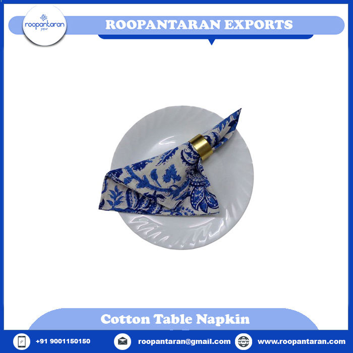 Servilleta de mesa de algodón puro bordada con estampado de bloques hechos a mano de alta calidad del fabricante indio, servilleta y accesorio de tela de gran oferta