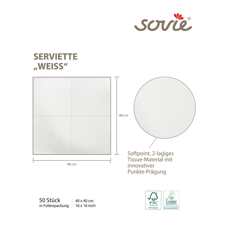 Servilletas Uni blanco 40x40 cm 1/4-Fold de Softpoint