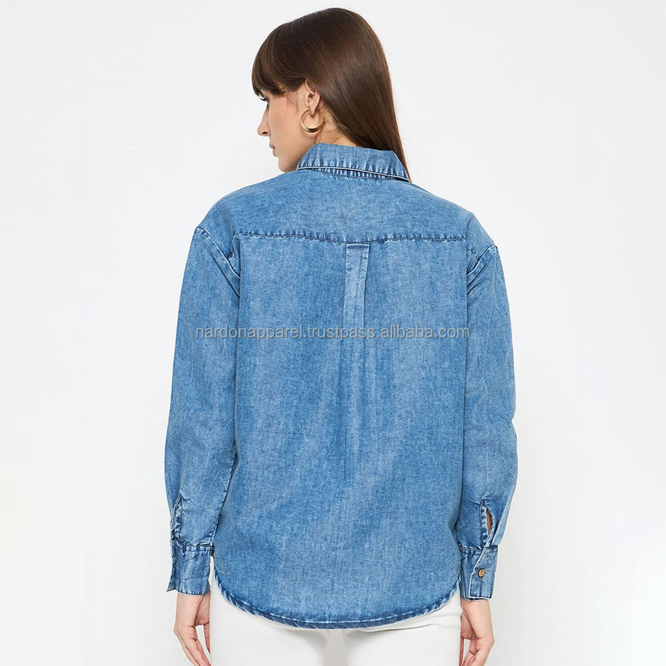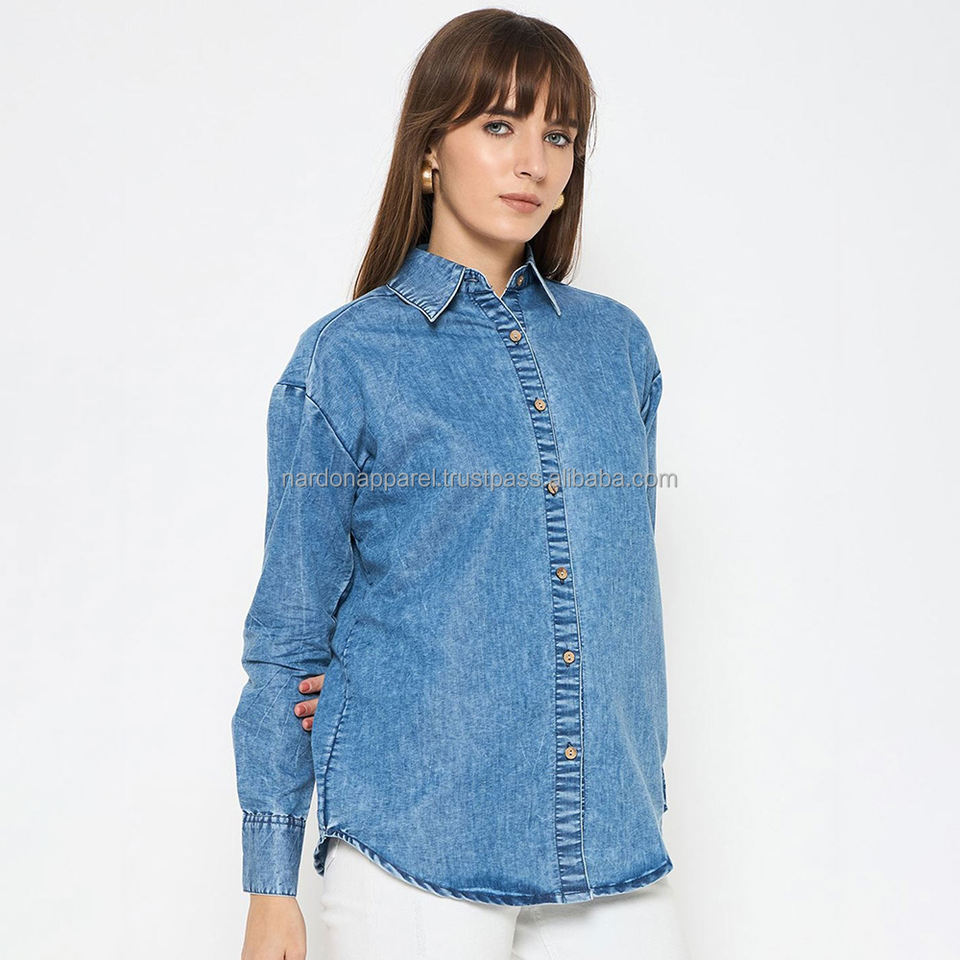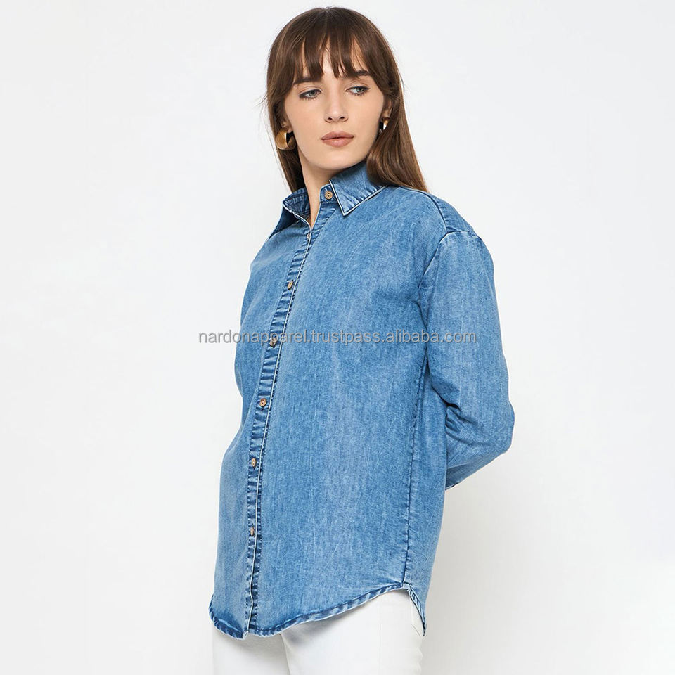 Nardon Apparel 2025, nuevo diseño, Camisa vaquera transpirable de manga larga, Camisa vaquera holgada para mujer