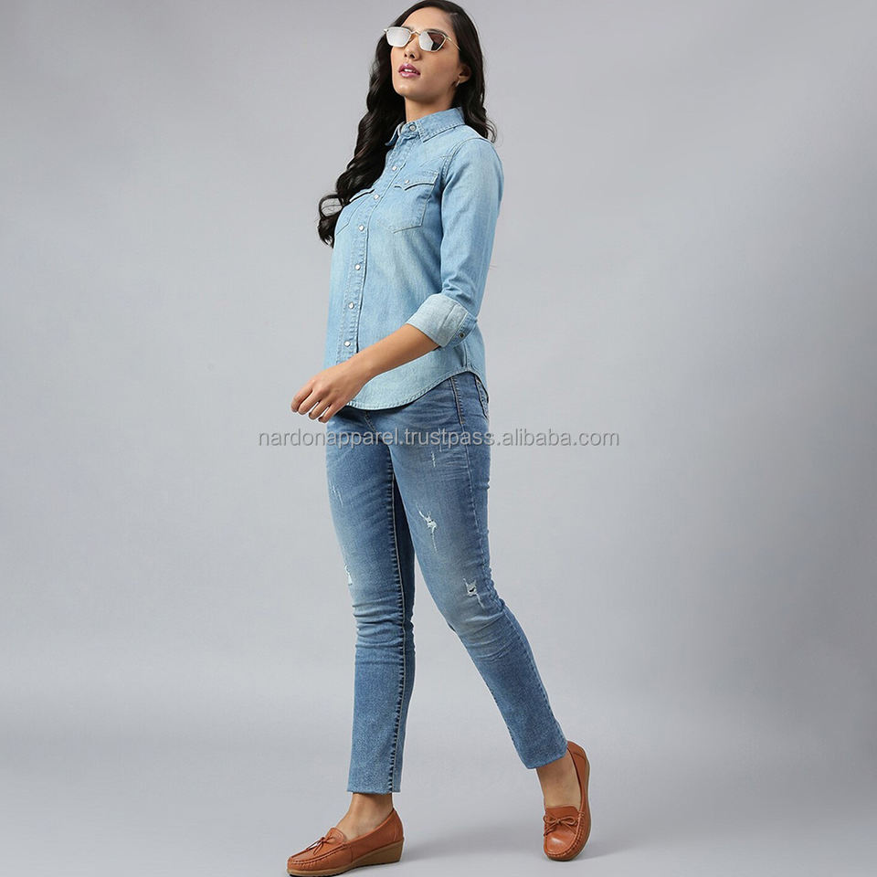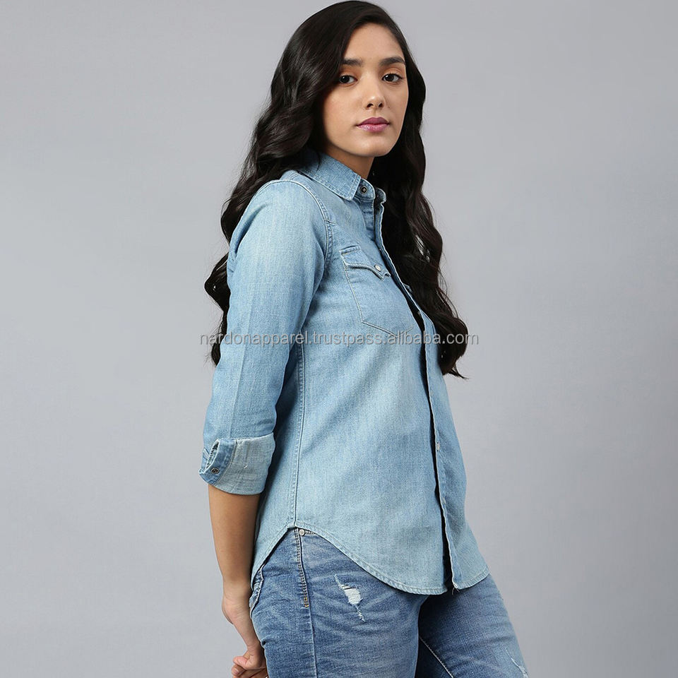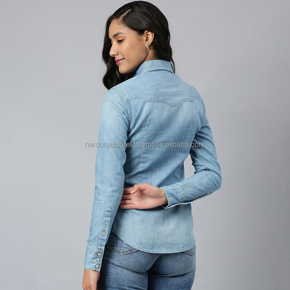 Nardon Apparel 2025 nueva moda de verano gran oferta mujeres camisas de mezclilla y ropa de calle de mezclilla ajustada mujer señora