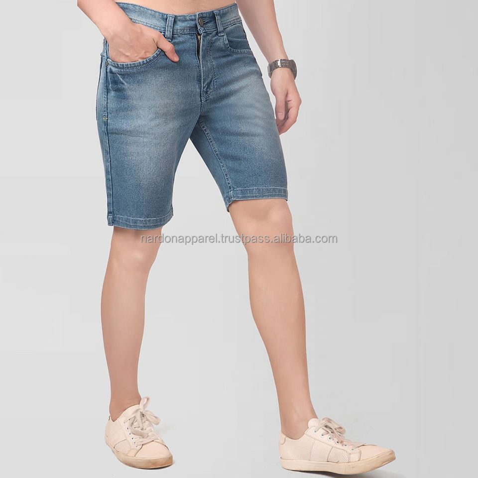Nardon Apparel Pantalones cortos de mezclilla con bolsillo frontal bordado personalizado High Street Solid Summer Classic Blue Men Fit Hip Hop Baggy
