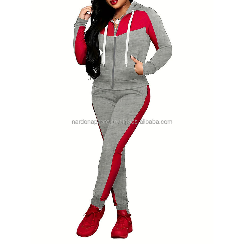 Nardon Apparel Conjunto personalizado de mujer Trajes de dos piezas Básicos Sudadera con capucha y pantalones acampanados Chaqueta con cremallera Pantalones acampanados ajustados Trajes para correr