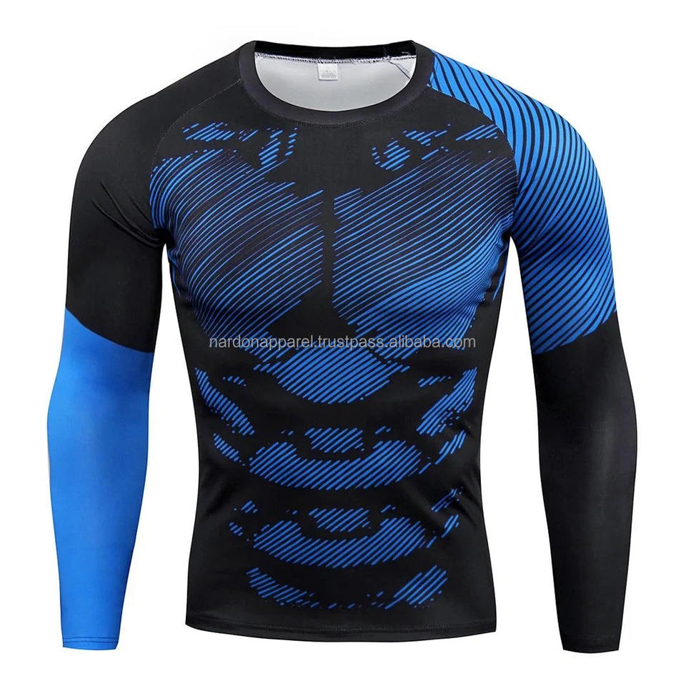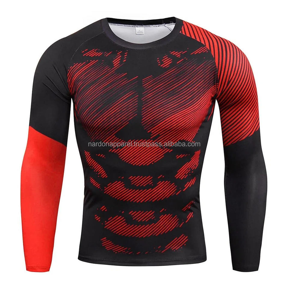 Nardon Apparel Personalice su propio logotipo Sublimado Manga completa Rash Guard MMA Rash Guard, Camisa de compresión MMA Rashguard para hombres