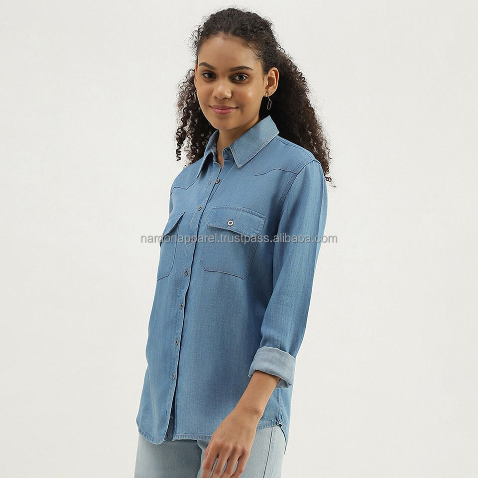 Nardon Apparel Trending Multi Pocket Denim Shirt Factory Direct Color sólido Manga larga 2025 Moda Mujer Camisa al por mayor