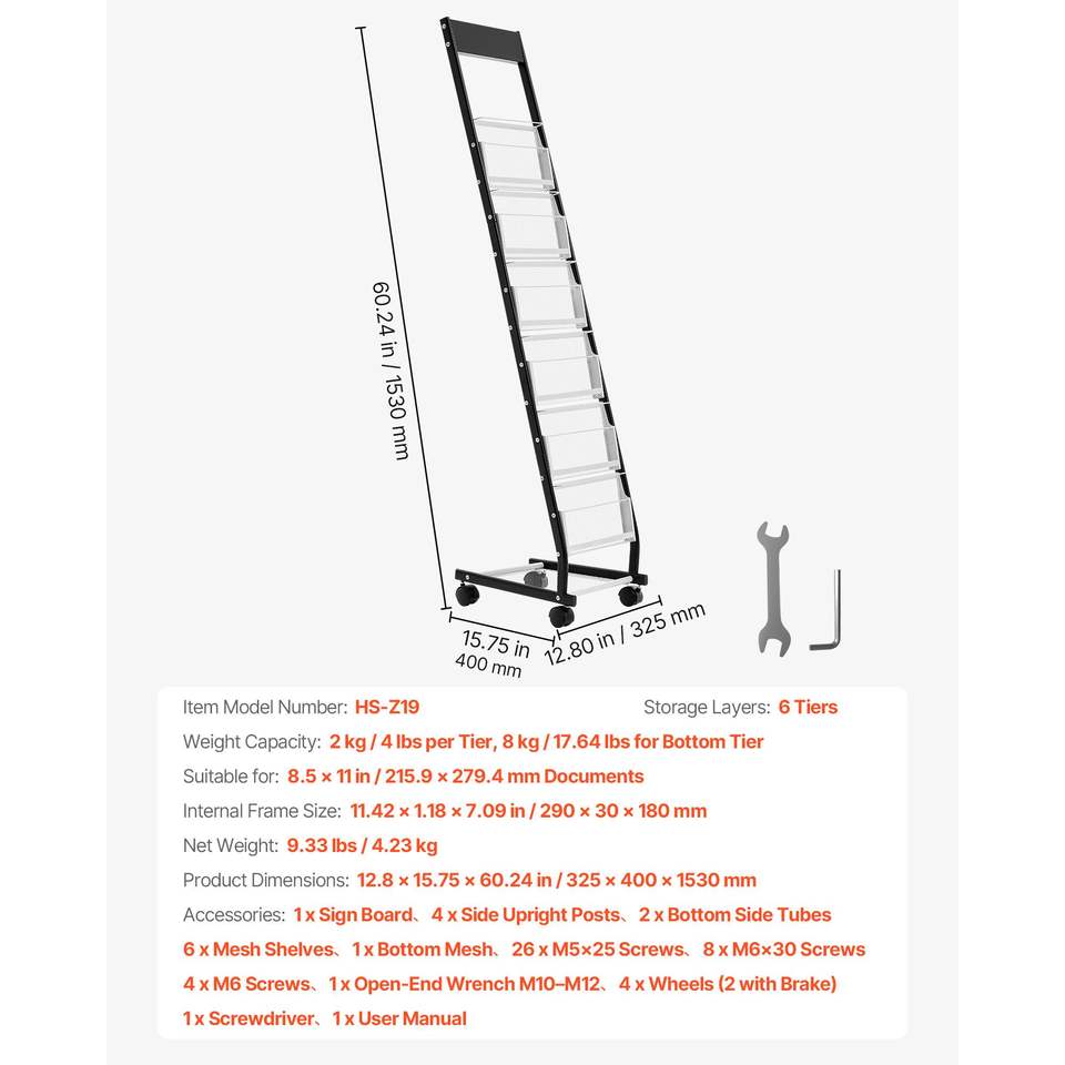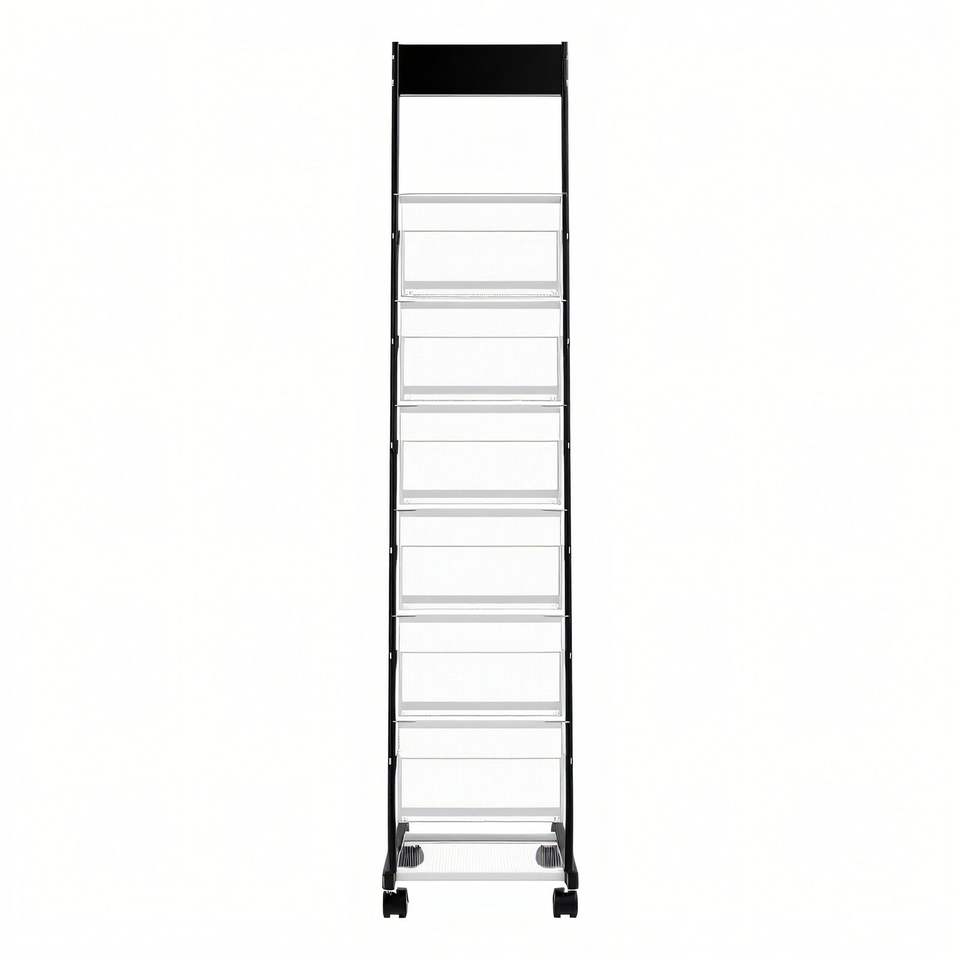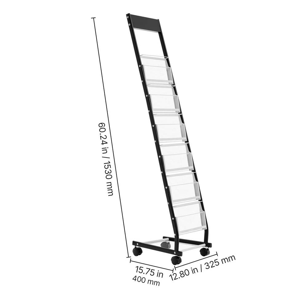 Exhibidor de Revistas Metálico Estrecho de 6 Niveles con Ruedas, Exhibidor de Folletos de Pie, Exhibidor de Literatura Móvil