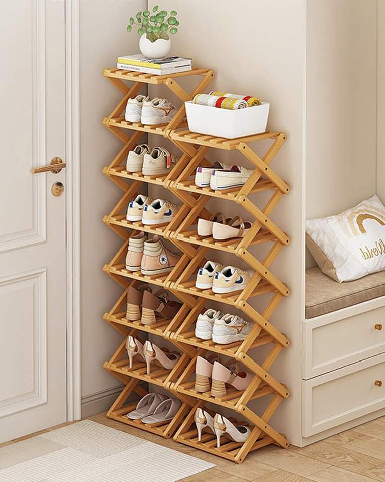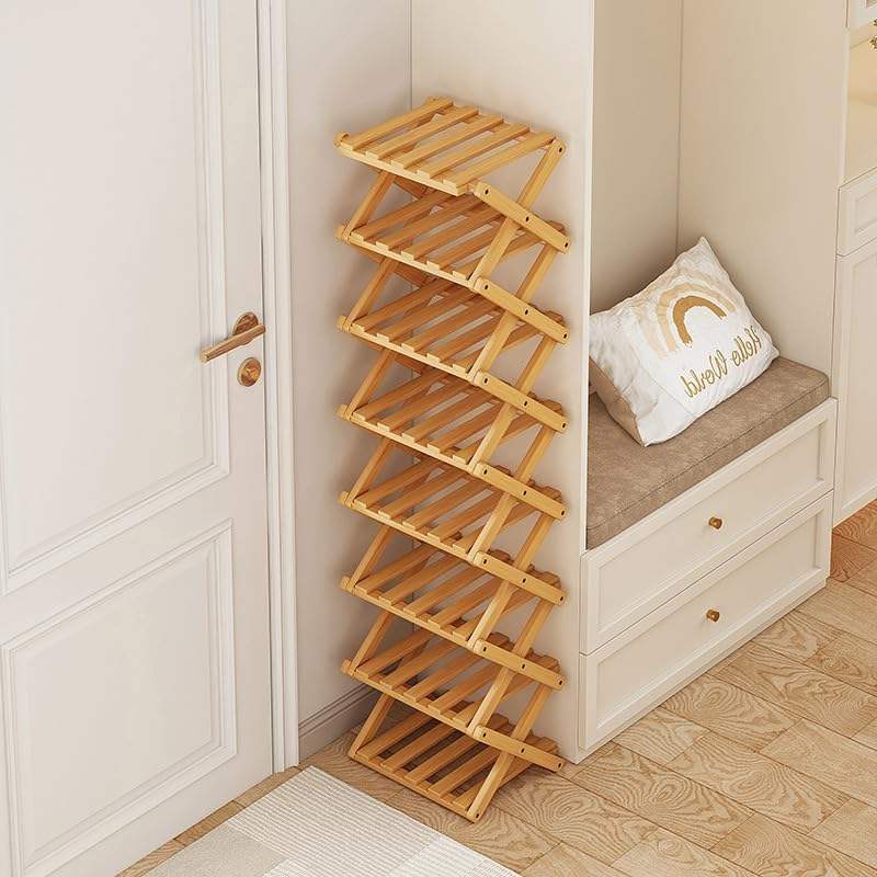 Zapatero plegable de bambú estrecho, organizador de almacenamiento de zapatos Vertical para armario de entrada, dormitorio, baño plegable, sala de estar